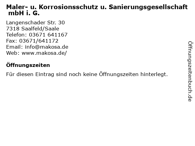 | Maler- u. Korrosionsschutz u. Sanierungsgesellschaft mbH i. G. anrufen | |