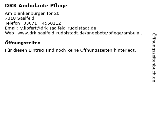| Öffnungszeiten DRK Ambulante Pflege in Saalfeld anzeigen | |