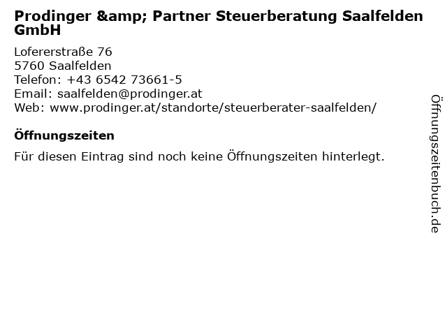 | Prodinger & Partner Steuerberatung Saalfelden GmbH anrufen | |