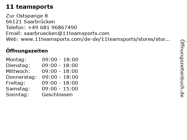 | Öffnungszeiten 11 teamsports in Saarbrücken anzeigen | |