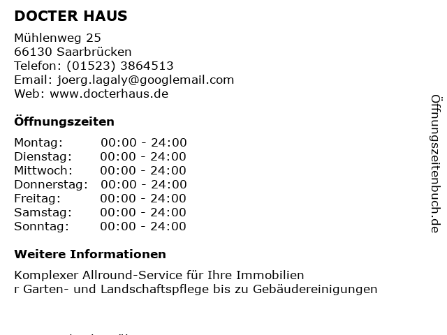 | Öffnungszeiten DOCTER HAUS in Saarbrücken anzeigen | |