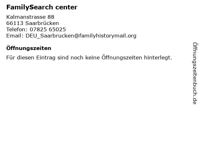 | Öffnungszeiten FamilySearch center in Saarbrücken anzeigen | |