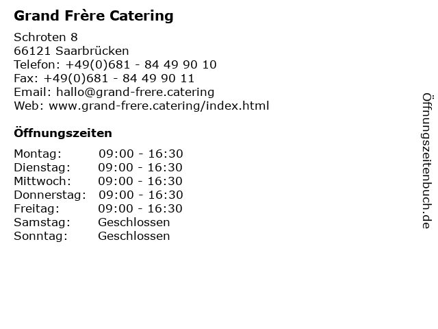 Öffnungszeiten Grand Frère Catering in Saarbrücken anzeigen | |