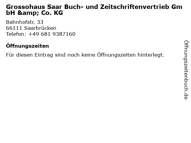 | Grossohaus Saar Buch- und Zeitschriftenvertrieb GmbH & Co. KG anrufen | |