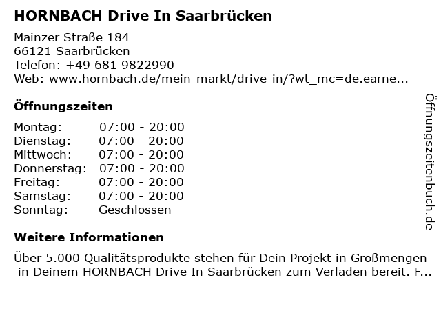 Branchen & Suchbegriffe zu HORNBACH Drive In Saarbrücken:baustoff zentrum, baustoffe, drive, drive in, hornbach |