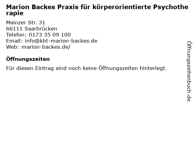 | Marion Backes Praxis für körperorientierte Psychotherapie anrufen | |