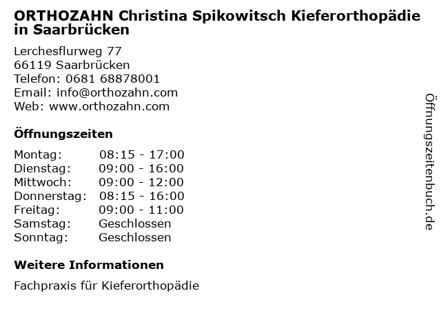 Branchen & Suchbegriffe zu ORTHOZAHN Christina Spikowitsch Kieferorthopädie in Saarbrücken:christina, kieferorthopädie, orthozahn, spikowitsch |