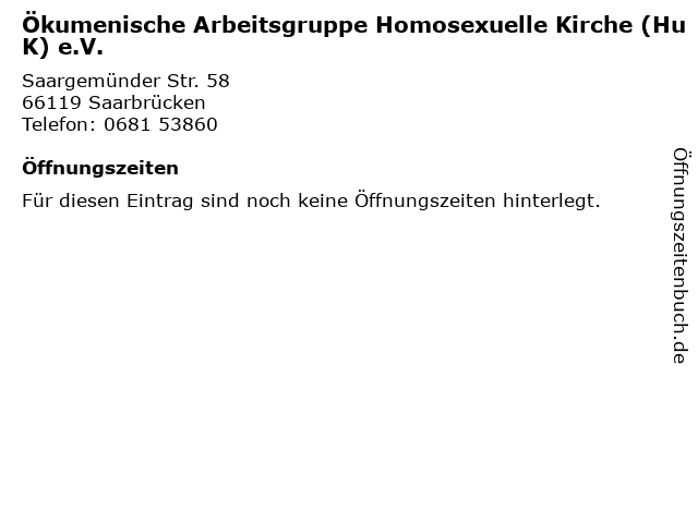| Ökumenische Arbeitsgruppe Homosexuelle Kirche (HuK) e.V. anrufen | |