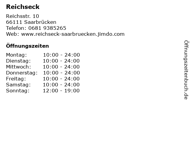 | Öffnungszeiten Reichseck in Saarbrücken anzeigen | |