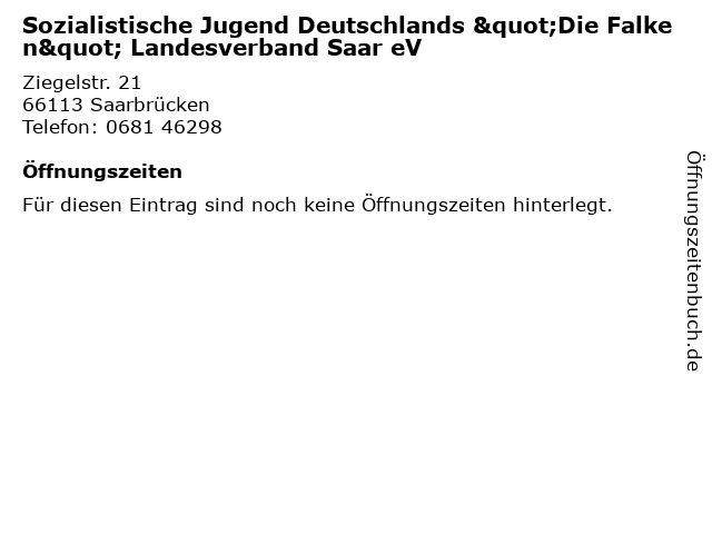 | Sozialistische Jugend Deutschlands "Die Falken" Landesverband Saar eV anrufen | |