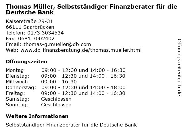 Branchen & Suchbegriffe zu Thomas Müller, Selbstständiger Finanzberater für die Deutsche Bank:bank, deutsche, finanzberater, müller, selbstständiger, thomas |