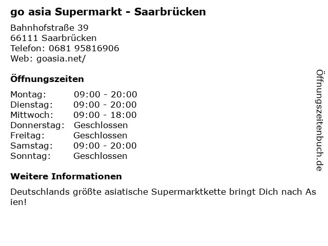 Branchen & Suchbegriffe zu go asia Supermarkt - Saarbrücken:asia, go, supermarkt, supermärkte |