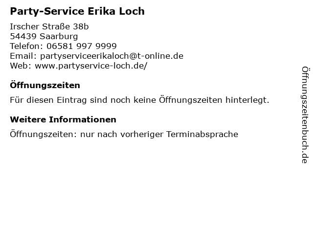 | Öffnungszeiten Party-Service Erika Loch in Saarburg anzeigen | |