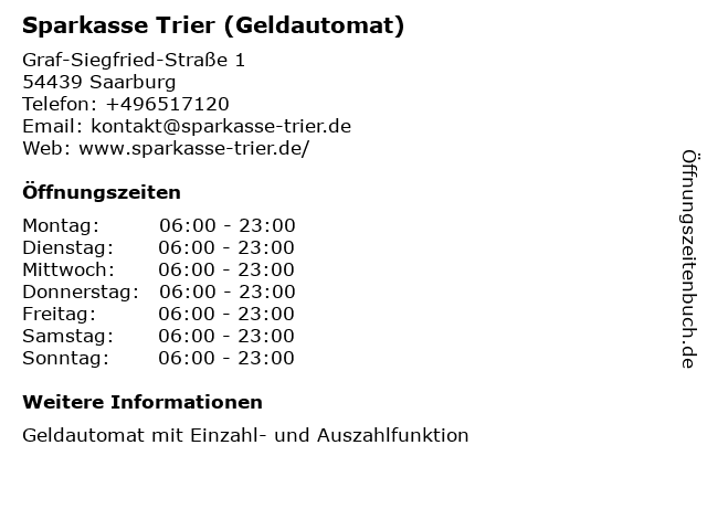 Sparkasse Trier (Geldautomat) in Saarburg: Telefonnummer, Öffnungszeiten und Adresse