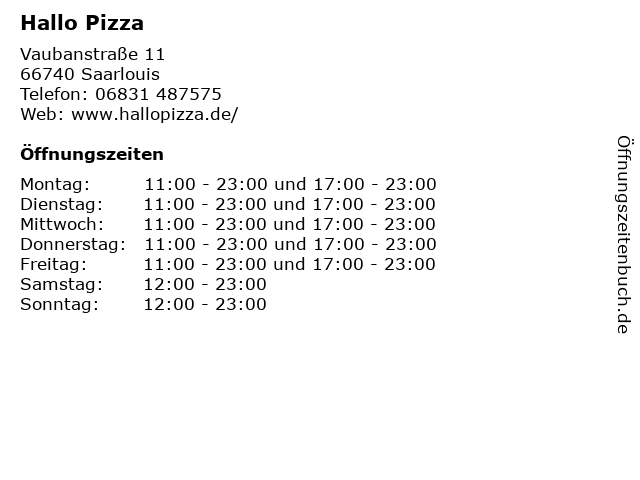 | Öffnungszeiten Hallo Pizza in Saarlouis anzeigen | |