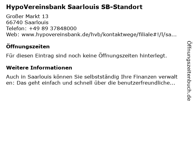 | HypoVereinsbank Saarlouis SB-Standort anrufen | |