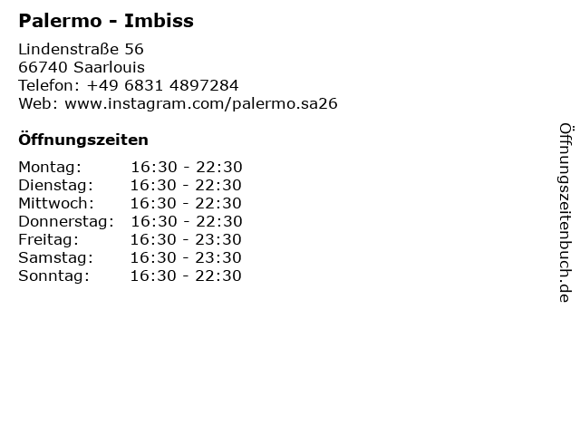 | Öffnungszeiten Palermo - Imbiss in Saarlouis anzeigen | |