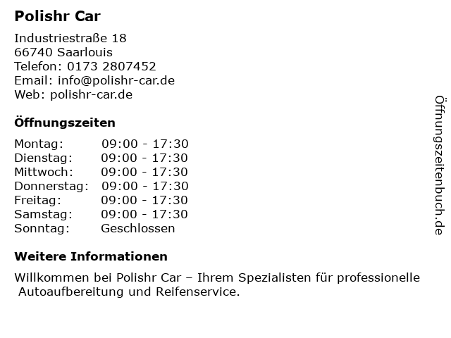 | Öffnungszeiten Polishr Car in Saarlouis anzeigen | |