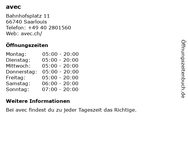| Öffnungszeiten avec in Saarlouis anzeigen | |