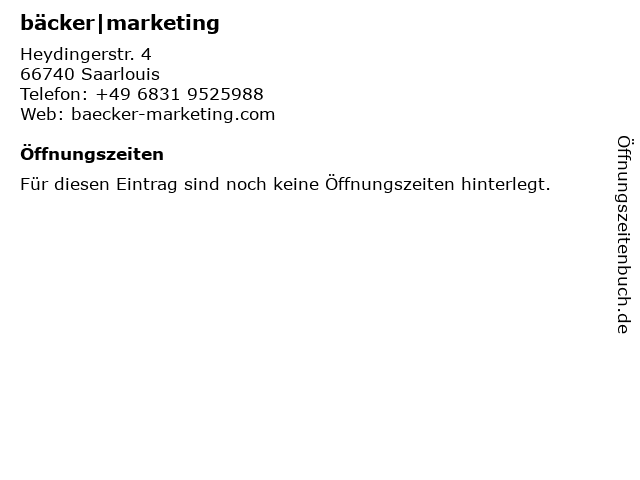 | Öffnungszeiten bäcker|marketing in Saarlouis anzeigen | |