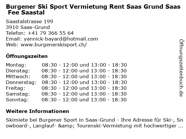 Branchen & Suchbegriffe zu Burgener Ski Sport Vermietung Rent Saas Grund Saas Fee Saastal:ausrüstung, beratung, burgener, fee, grund, langlaufski, miete, qualität, rent, saas, saas-grund, saastal, service, ski, skibrillen, skihelm, skimiete, skischuhe, skistöcke, skiverleih, snowboard, sport, tourenski, vermietung |