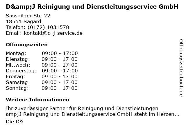 | Montag | 09:00-17:00 |