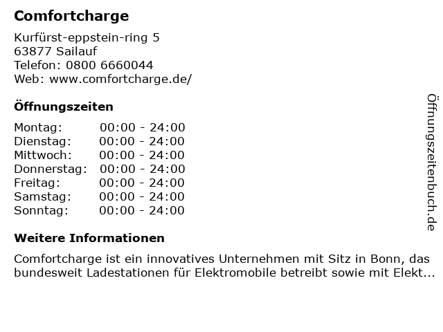 | Öffnungszeiten Comfortcharge in Sailauf anzeigen | |
