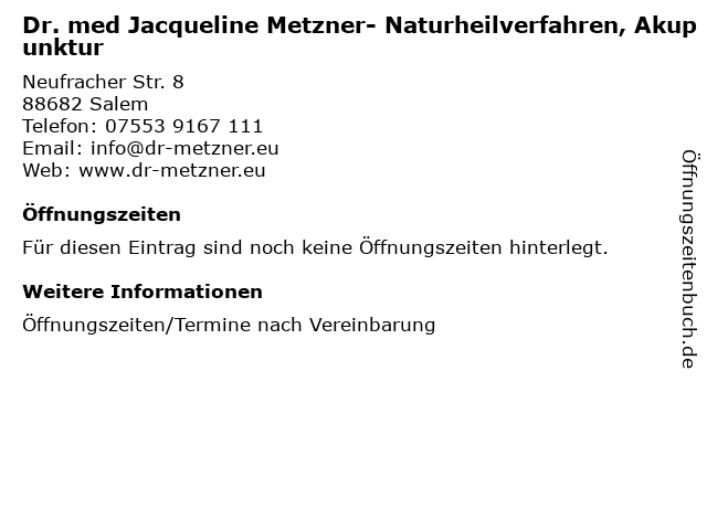 | Dr. med Jacqueline Metzner- Naturheilverfahren, Akupunktur anrufen | |