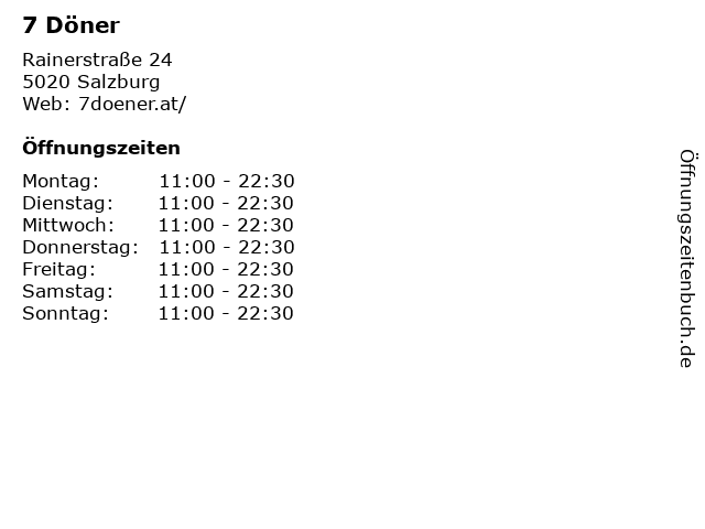 | Öffnungszeiten 7 Döner in Salzburg anzeigen | |