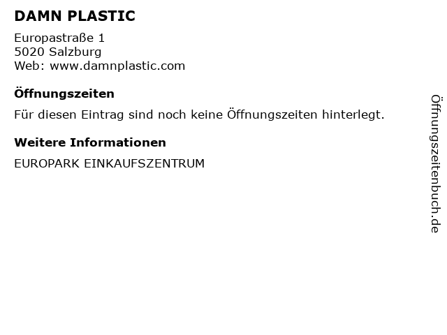 | Öffnungszeiten DAMN PLASTIC in Salzburg anzeigen | |