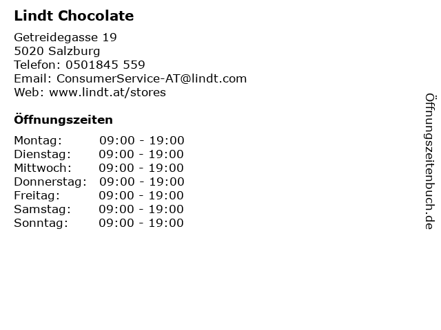 | Öffnungszeiten Lindt Chocolate in Salzburg anzeigen | |