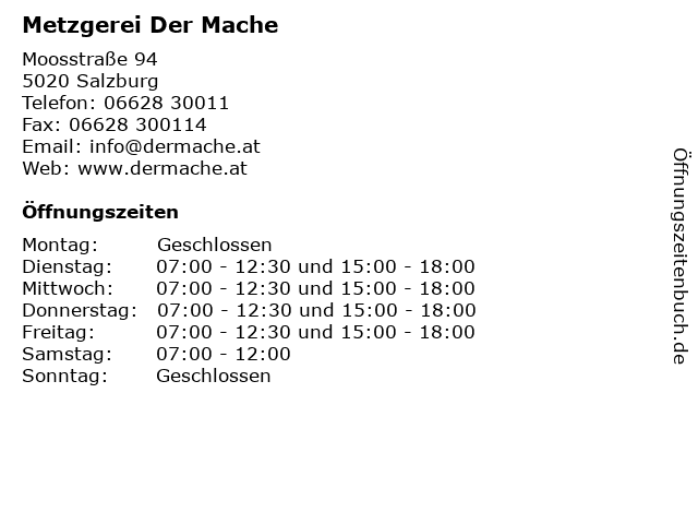 | Öffnungszeiten Metzgerei Der Mache in Salzburg anzeigen | |