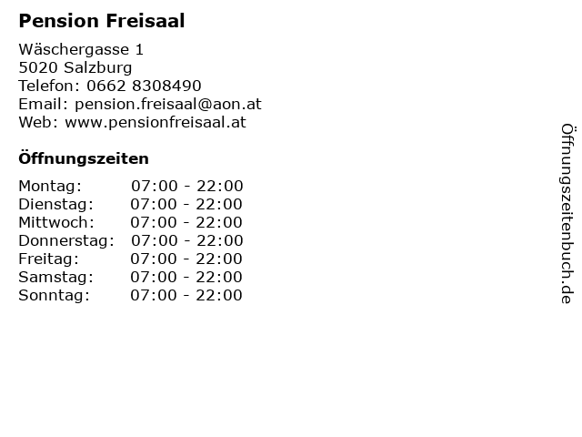 | Öffnungszeiten Pension Freisaal in Salzburg anzeigen | |