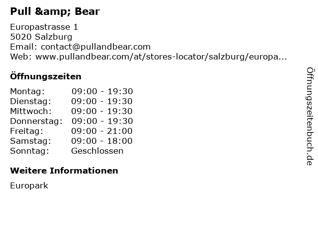 | Öffnungszeiten Pull & Bear in Salzburg anzeigen | |