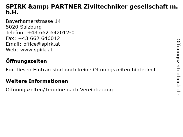 | SPIRK & PARTNER Ziviltechniker gesellschaft m.b.H. anrufen | |