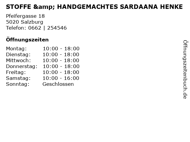 3 Wenatex Haus der Stoffe Handels GmbH - Fabrikverkauf (Entfernung: 4,93 km) Münchner Bundesstraße 140, 5020 Salzburg 5 Kreativstübchen Laufen – Kurzwaren, Wolle, Stoffe, Bastelbedarf (Entfernung: 17,81 km) Schloßstraße 3, 83410 Laufen 6 |