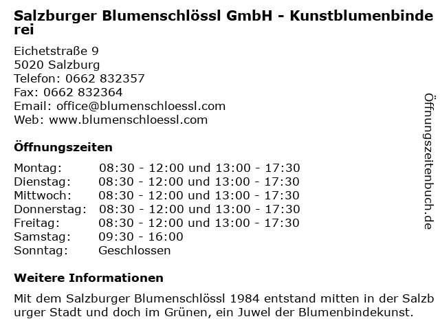 Branchen & Suchbegriffe zu Salzburger Blumenschlössl GmbH - Kunstblumenbinderei:blumenschlössl, kunstblumenbinderei, salzburger |