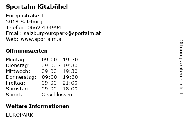 | Öffnungszeiten Sportalm Kitzbühel in Salzburg anzeigen | |