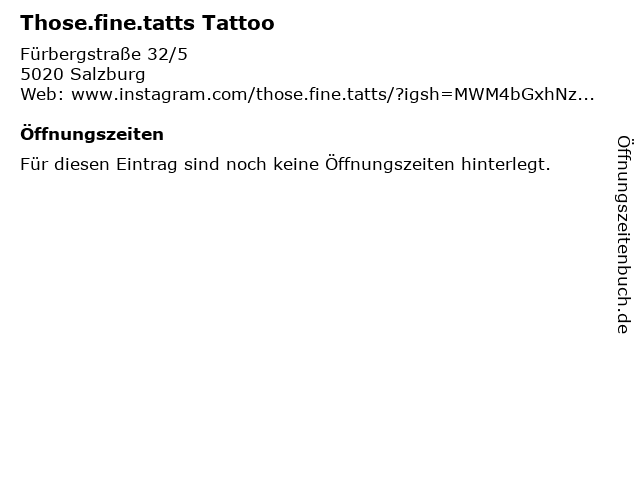 | Öffnungszeiten Those.fine.tatts Tattoo in Salzburg anzeigen | |