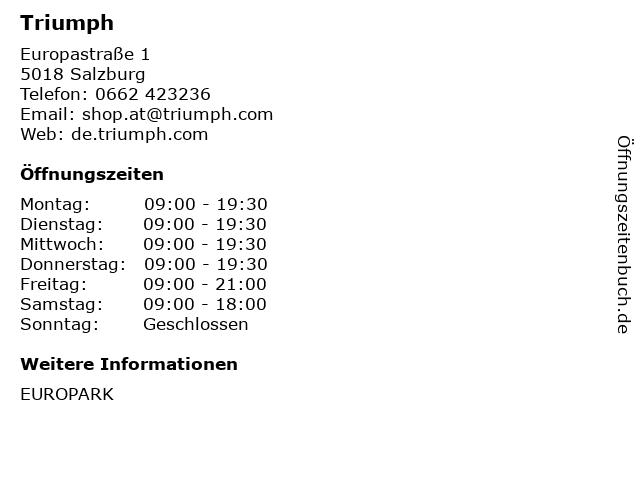 | Öffnungszeiten Triumph in Salzburg anzeigen | |