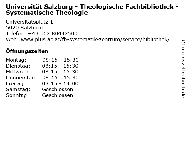 Branchen & Suchbegriffe zu Universität Salzburg - Theologische Fachbibliothek - Systematische Theologie:bibliothek, buch, buchscanner, fachbibliothek, literaturen, salzburg, sprachen, systematische, theologie, theologie“, theologische, universität, „systematische |