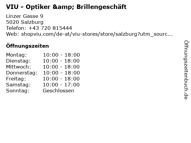 5 sehen!wutscher - Dein Optiker - Designer Outlet (Entfernung: 4,29 km) Kasernenstraße 1, 5073 Himmelreich 6 |
