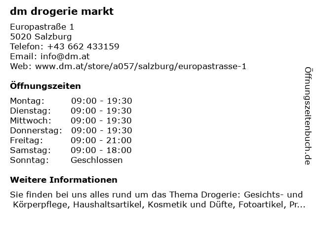 Öffnungszeiten dm drogerie markt in Salzburg anzeigen | |