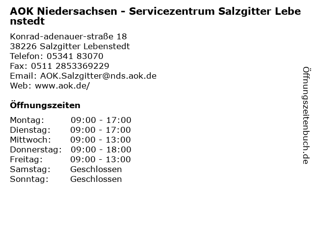 Branchen & Suchbegriffe zu AOK Niedersachsen - Servicezentrum Salzgitter Lebenstedt:aok, lebenstedt, niedersachsen, servicezentrum |