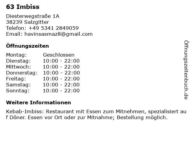 Branchen & Suchbegriffe zu 63 Imbiss:63, bestellung, döner, grillhaus, imbiss, kebap essen in der nähe, top 10 döner in salzgitter |