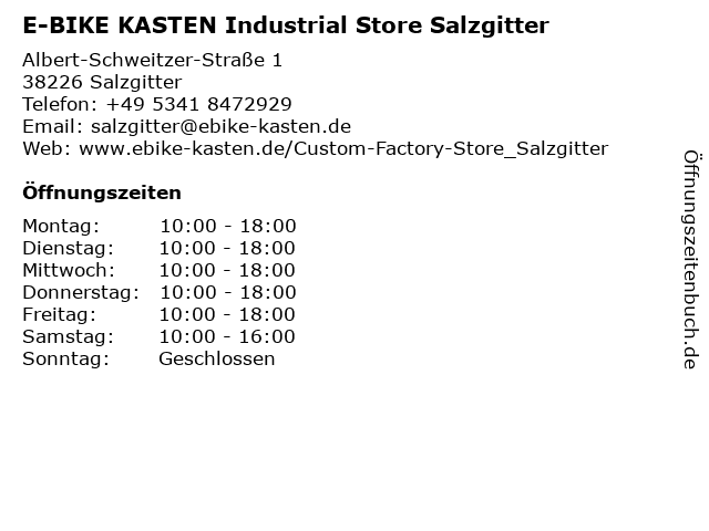 Branchen & Suchbegriffe zu E-BIKE KASTEN Industrial Store Salzgitter:bike, e-bike, fahrradverkauf, fahrradwerkstatt, fahrräder, industrial, kasten, store |