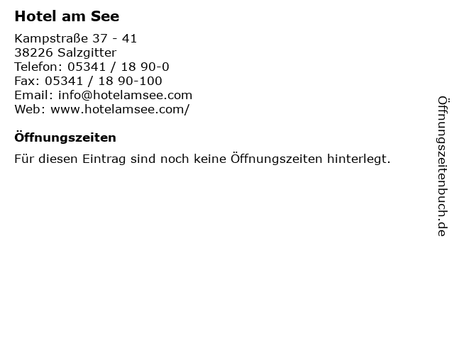 | Öffnungszeiten Hotel am See in Salzgitter anzeigen | |