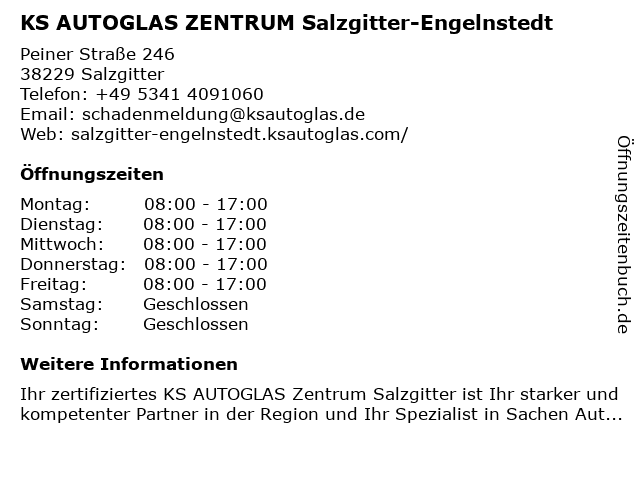 2 Carglass GmbH Salzgitter (Engelnstedt) (Entfernung: 0,73 km) Gustav-hagemann-straße 8, 38229 Salzgitter 3 Öffentliche Versicherung Braunschweig - Jastremski · Naujoks · Schübbe & Team Engelnstedt (Entfernung: 0,87 km) Gustav-hagemann-straße 1, 38229 Salzgitter 6 |