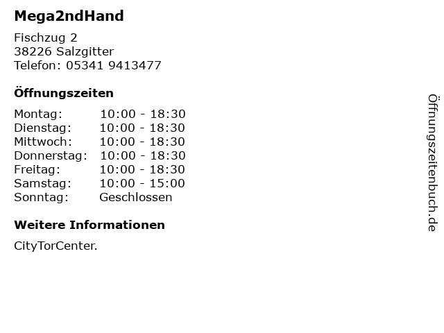 | Öffnungszeiten Mega2ndHand in Salzgitter anzeigen | |