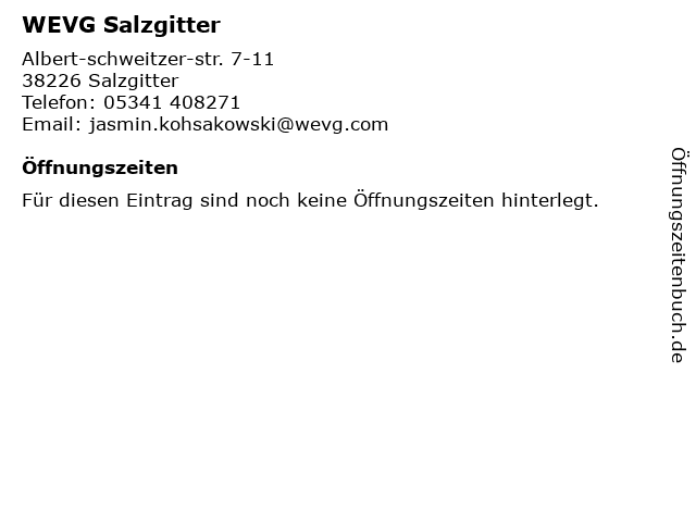 | Öffnungszeiten WEVG Salzgitter in Salzgitter anzeigen | |